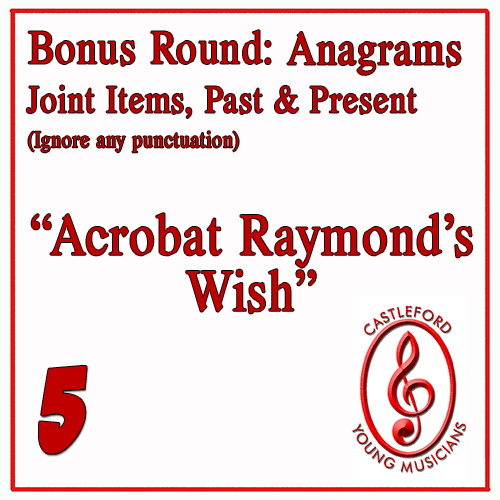 CYM Ultimate Quiz - Bonus Round - Anagrams (Joint Items Recent Past & Present)